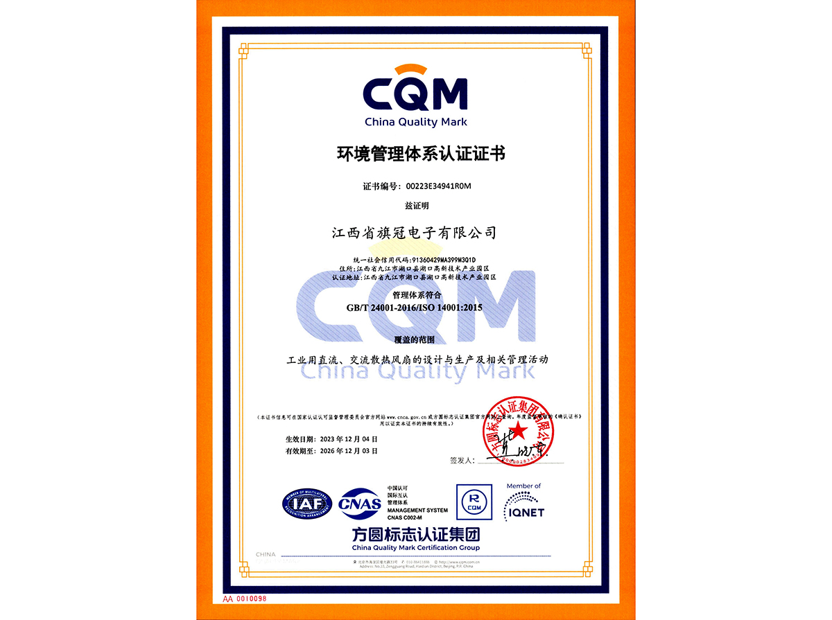 旗冠ISO14001證書